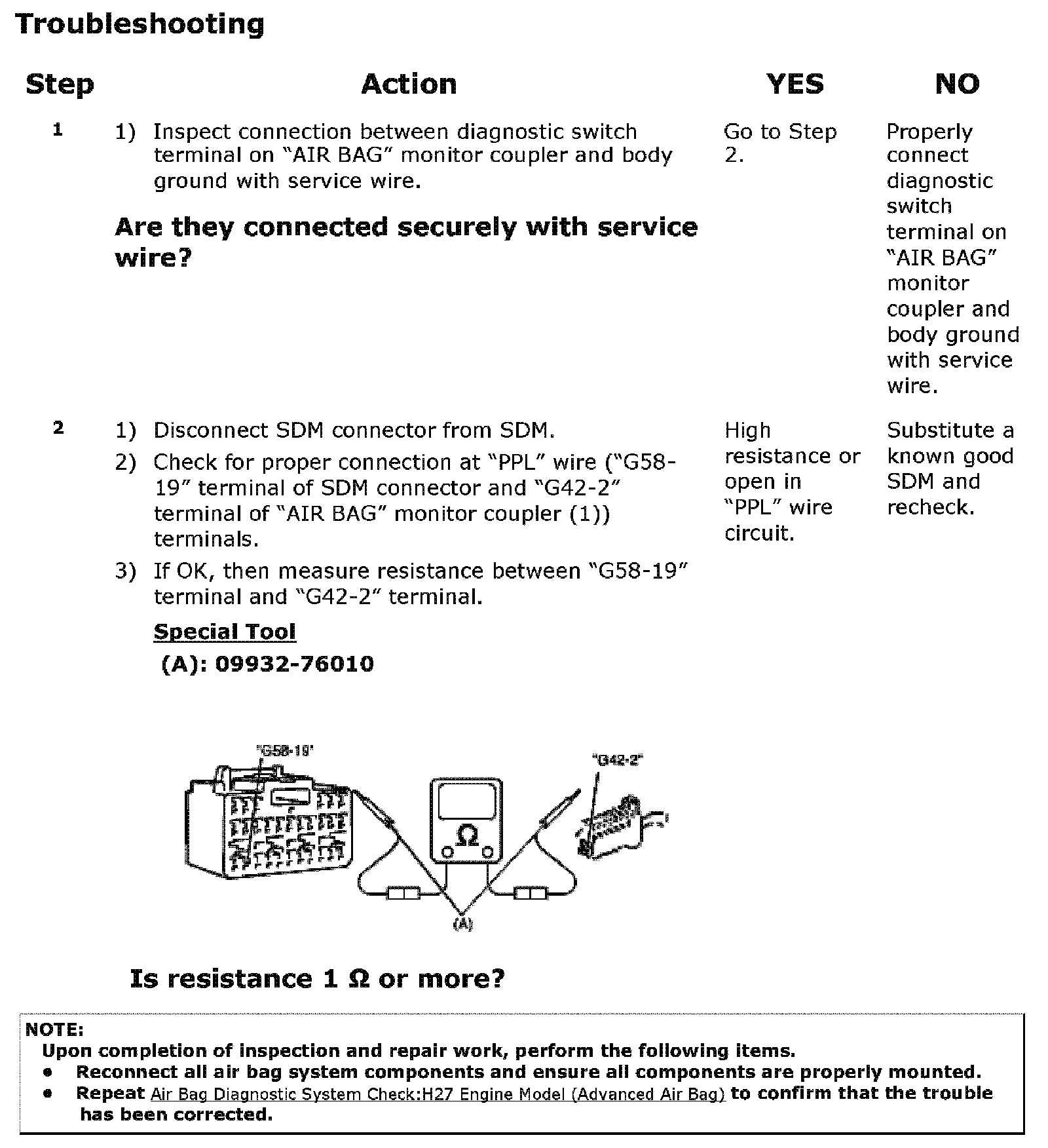 - When a check for proper connection is required, refer to Inspection of Intermittent and Poor Connections:H27 Engine Model (Advanced Air Bag). Intermittents and Poor Connections