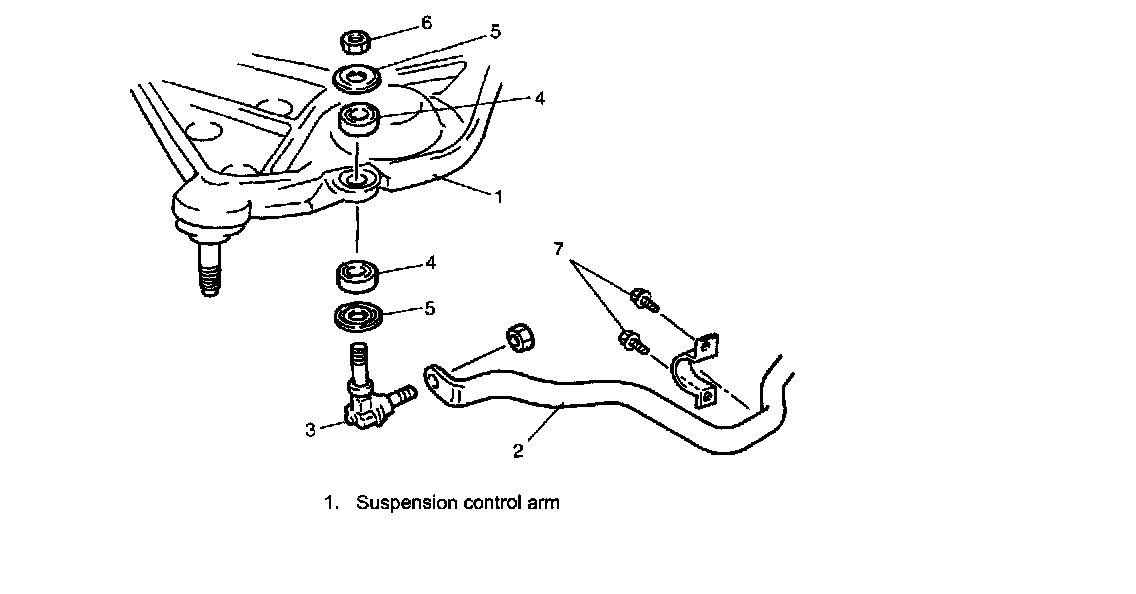 2. Remove stabilizer bar mount bush bracket bolts (7).