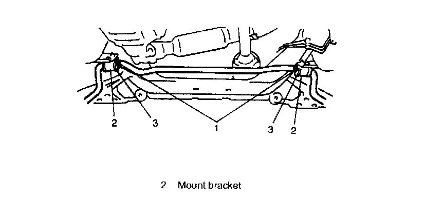 NOTE: For correct installation of stabilizer bar, side-to-side, be sure that color paint (1) on stabilizer bar aligns with mount bush (3), both right and led, as shown.