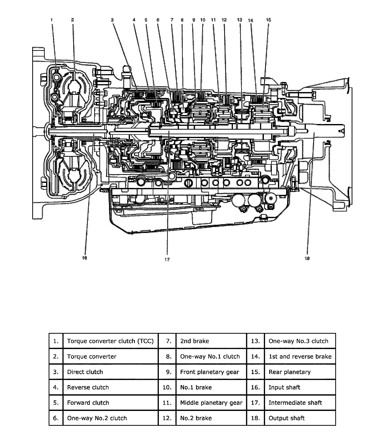This automatic transmission has the clutch-to-clutch (brake) control function when the gear is upshifted from the 4th gear to the 5th gear and downshifted from the 5th gear to the 4th gear. With this function, gears are synchronized by controlling the hydraulic pressure to the forward clutch and No. 1 brake without using the one-way clutch. This automatic transmission also has the line pressure learning control function to achieve gear changes smoothly. Therefore, when any of the following conditions applies, initialize the line pressure learning control of TCM. Neglecting this initialization may cause excessive shift shock.