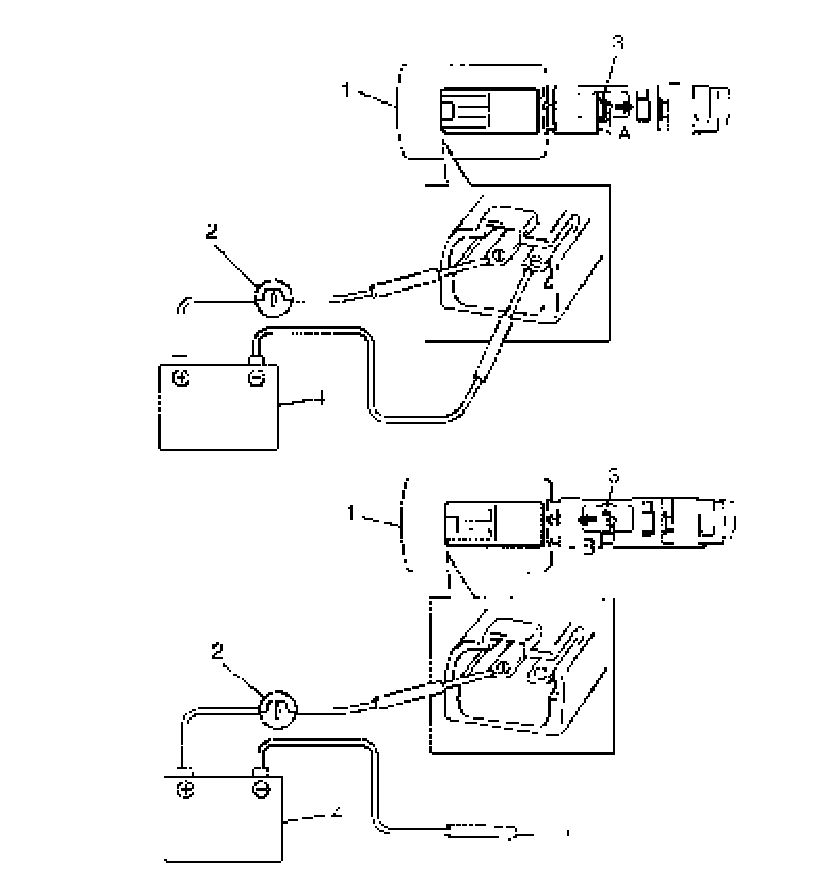 8. Disconnect pressure control solenoid valve (1) from battery (4) and check that valve (3) moves in arrow "B" direction as shown in the figure.