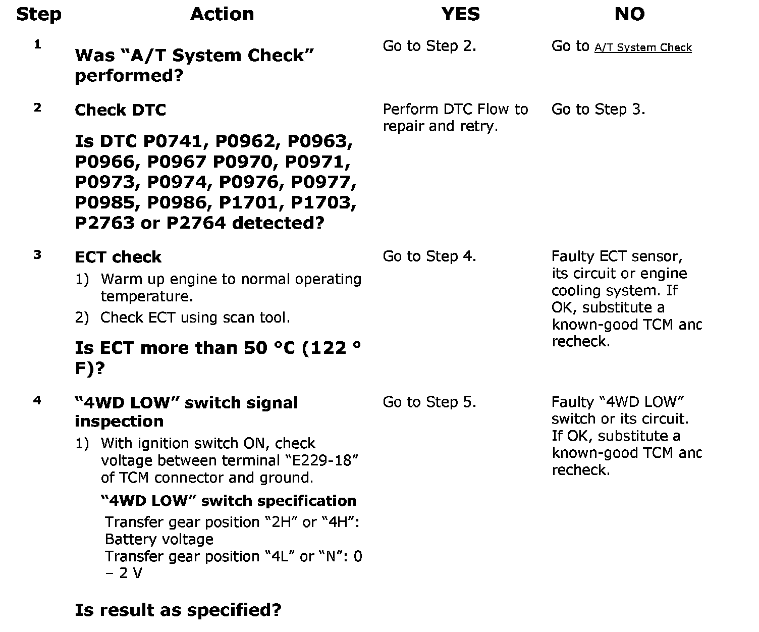 ^ TCM detects the following DTCs.