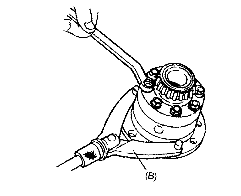 a. Hold joint flange with special tool and then remove flange nut by using power wrench (4 - 10 magnification) (2).