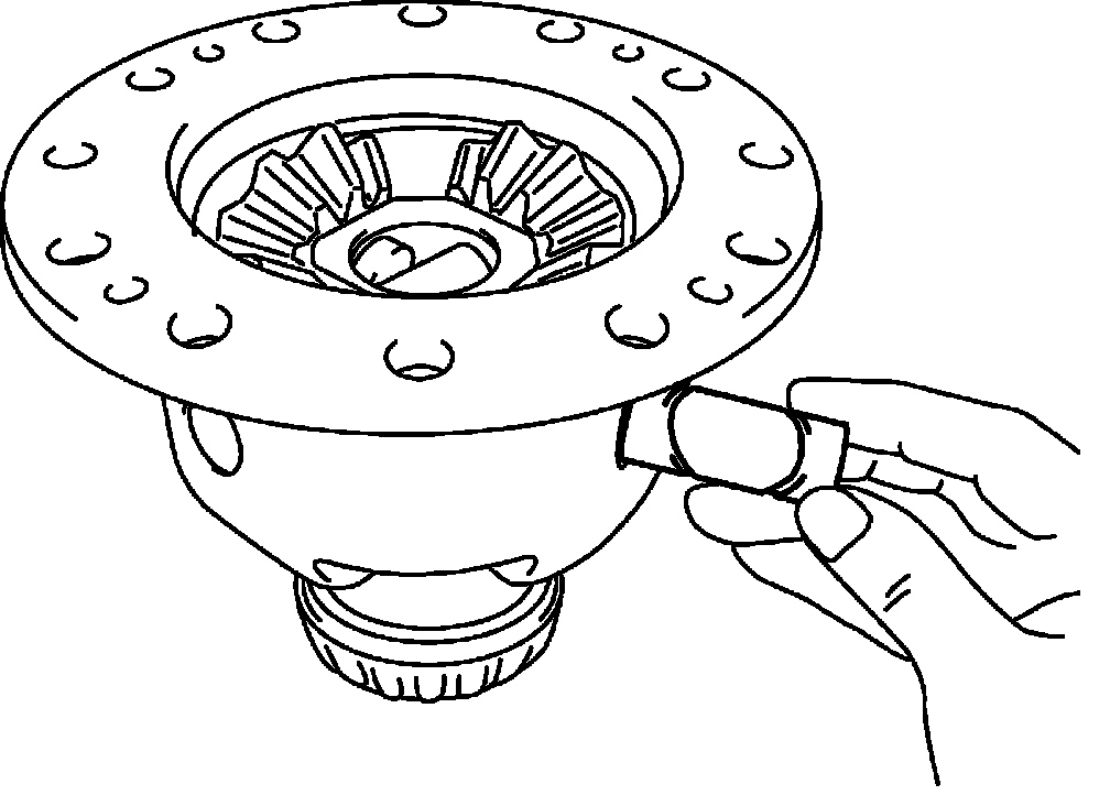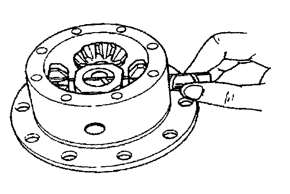 c. Remove pinion shaft, side gears, washers, differential pinions, spring washers, thrust washers.