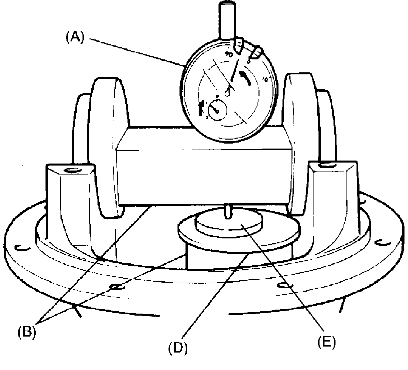 ^ Bearing preload can be checked roughly by using flange holder as shown in figure. In this measurement, holder arm itself will work as balance weight and torque will be replaced with angle. However, flange should be rotated very slowly with hand support so as not to allow over revolution due to inertia.