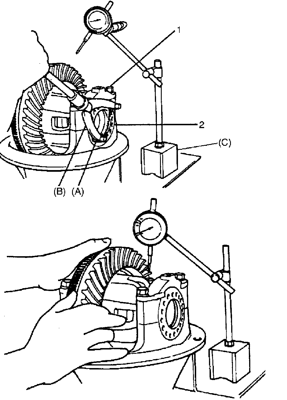 NOTE: Be careful not to turn drive bevel gear more than one full revolution, for it will hinder accurate check.