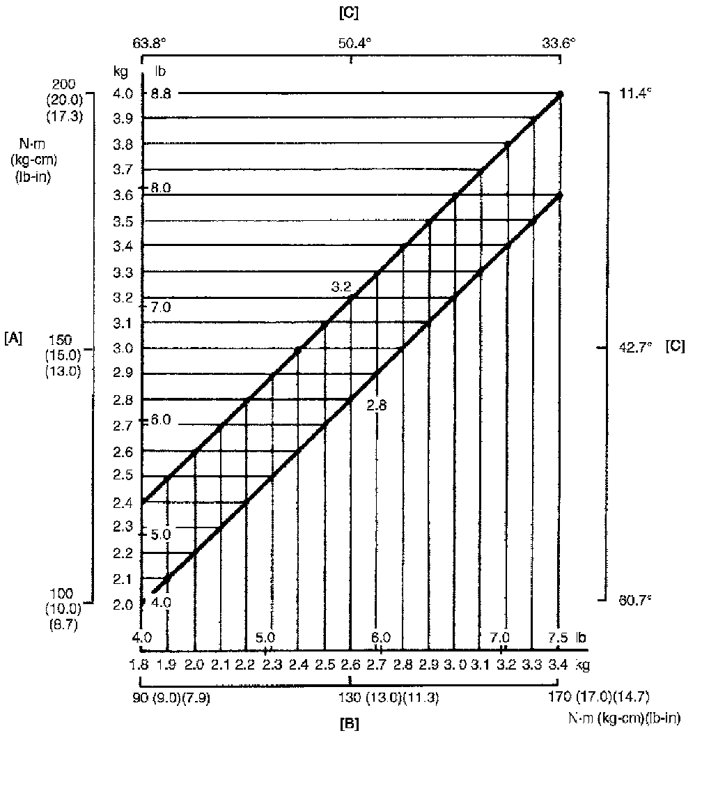 For H25 engine model: 18 - 34 N (1.8 - 3.4 kg, 4.0 - 7.5 lb)