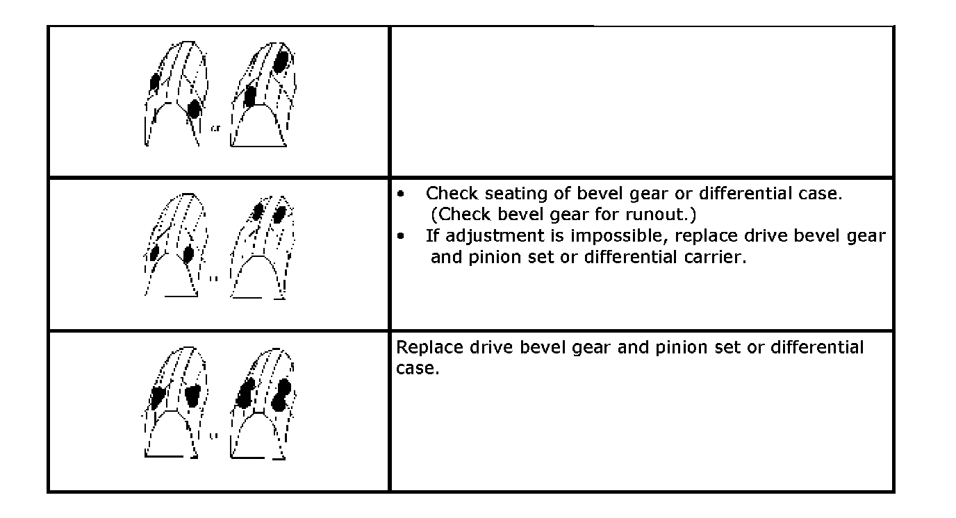 c. Bring painted part up and check contact pattern, referring to the following table. If contact pattern is not normal, readjust or replace as necessary according to instruction in the table.