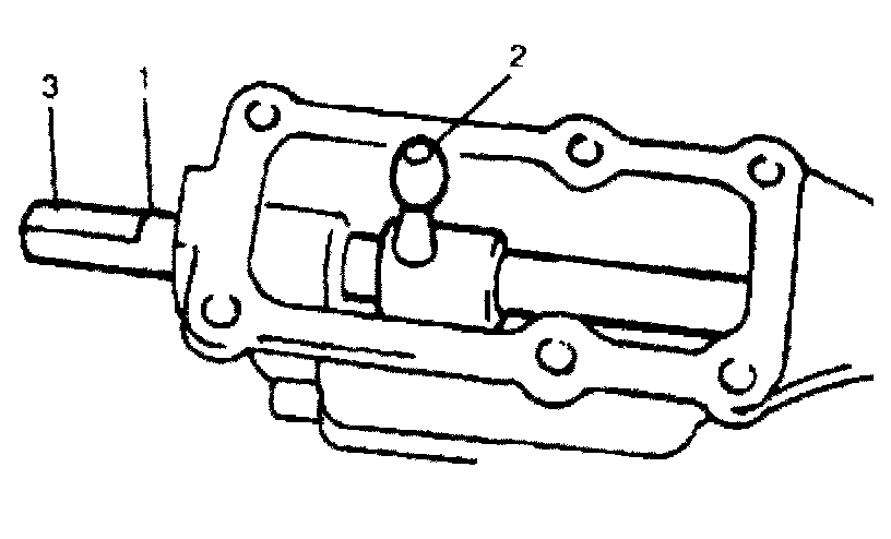 ^ Cut off portion (3) in shift shaft (1) should face downward when shift shaft (1) is installed.