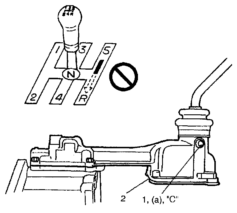 ^ Be sure to apply sealant to mating surface of gear shift lever case (2) for its final installation.