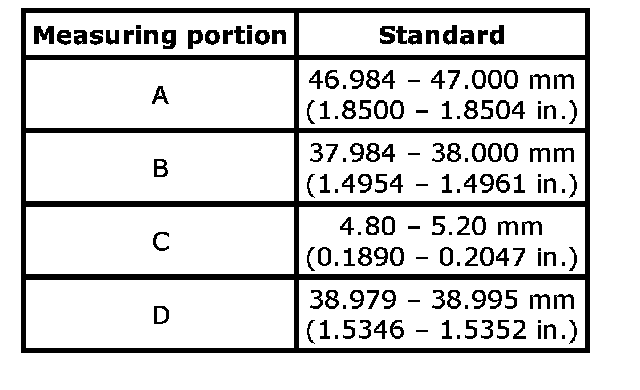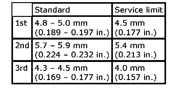 1st gear: 46.015 - 46.040 mm (1.8116 - 1.8126 inch)