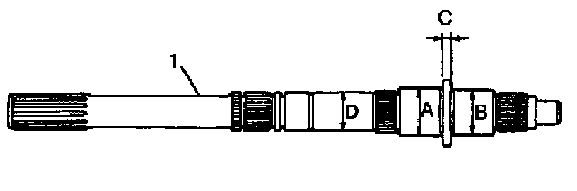 ^ Check diameter of main shaft (1) and thickness of main shaft (1) flanges as shown in the figure. If measured value is out of specification, replace main shaft (1).