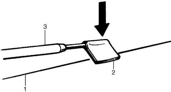 ^ When measuring wire voltage, use a tester with negative probe (3) wrapped with a tin foil (2) which should be held down on wire (1) by finger pressure.