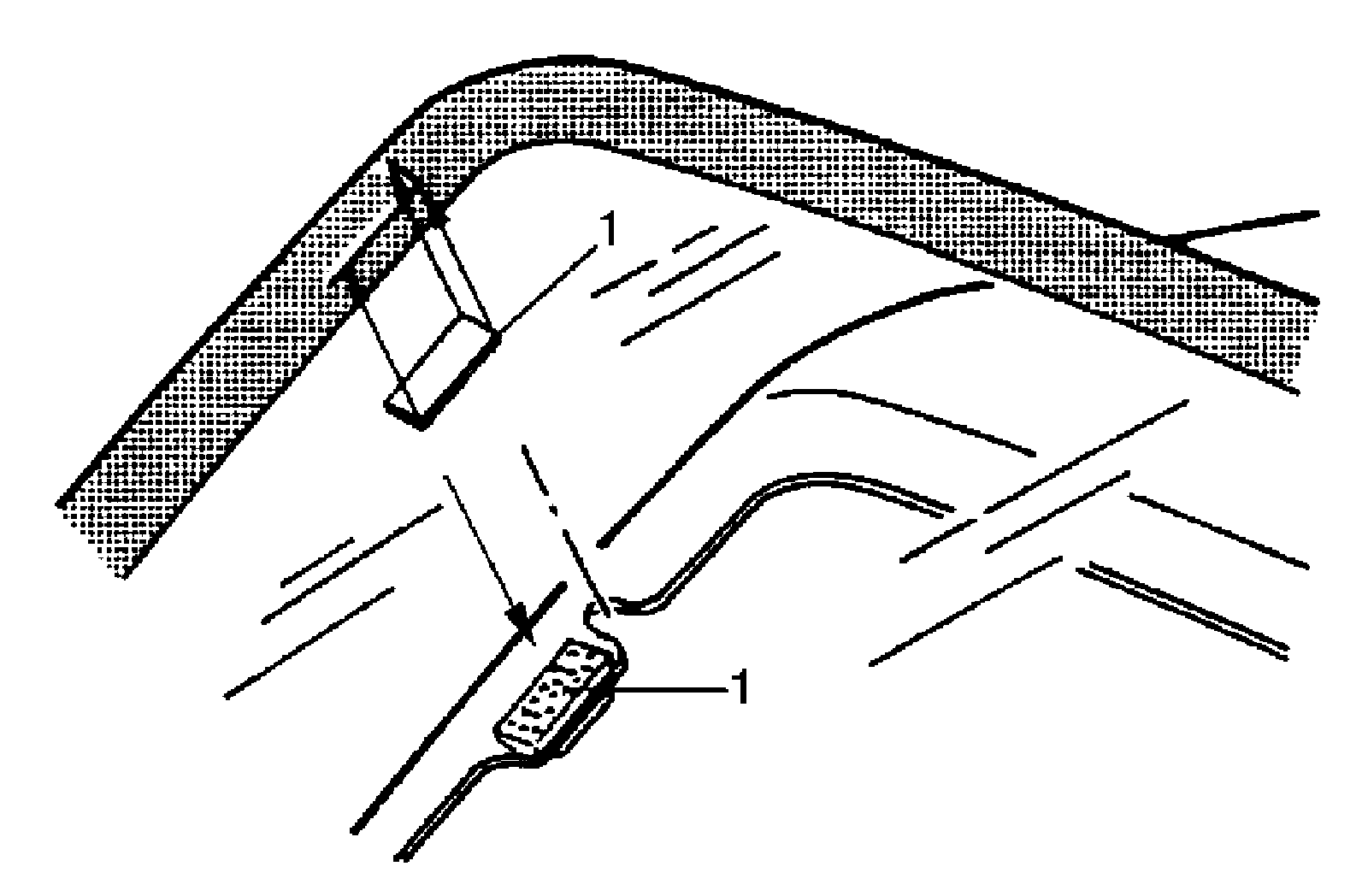 2. Install new glass stoppers (2 pcs) to lower side of windshield and new fastener (1) to body. When reusing windshield, install new fastener (1) to windshield.
