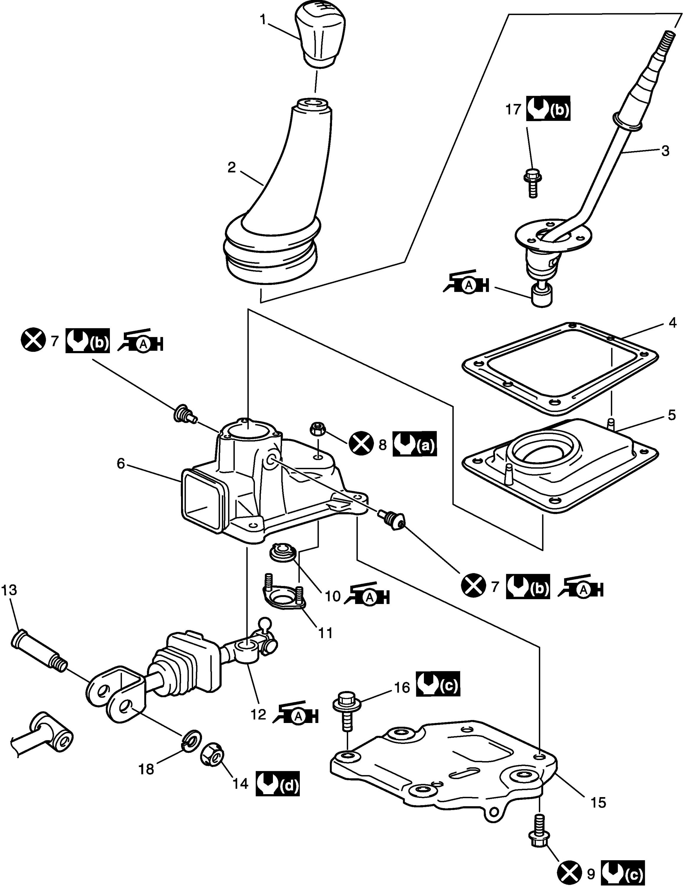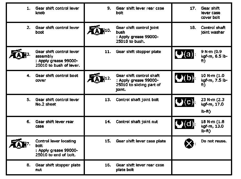 Gear Shift Control Lever Rear Case Assembly Components (part 1):