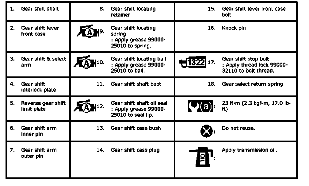 Gear Shift Lever Front Case Assembly Components (part 2):