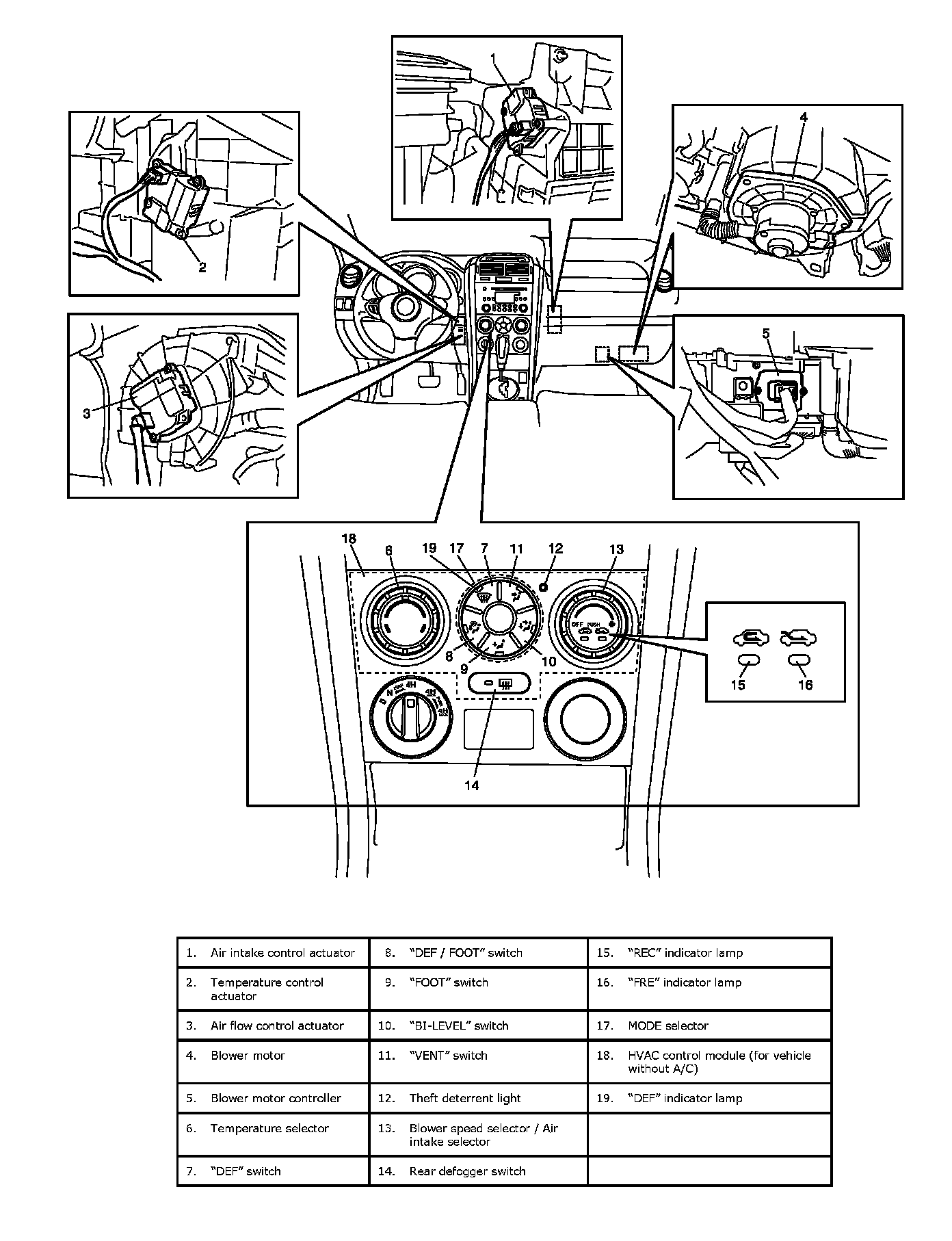 Electronic Components Location For Heater (For Vehicle Without A/C):