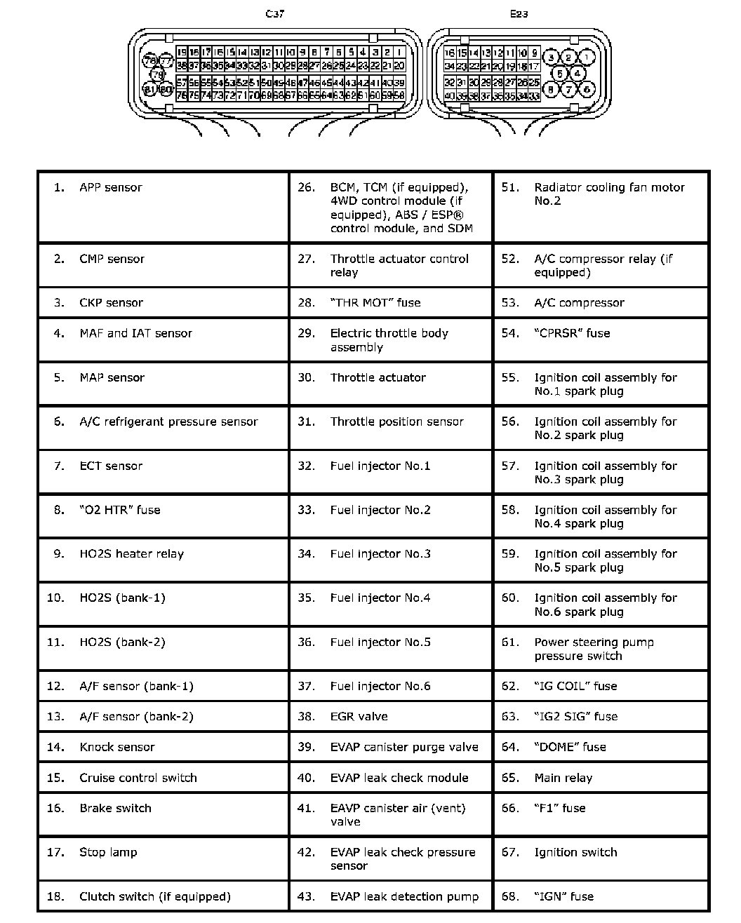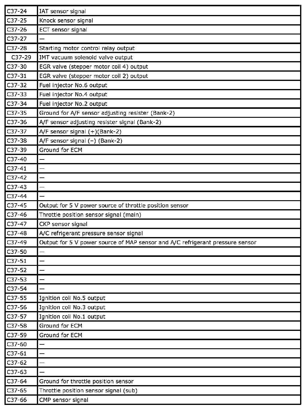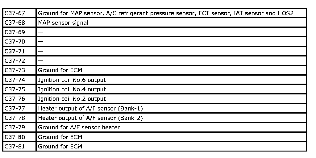 Terminal arrangement of ECM (PCM) connector (Viewed from harness side)