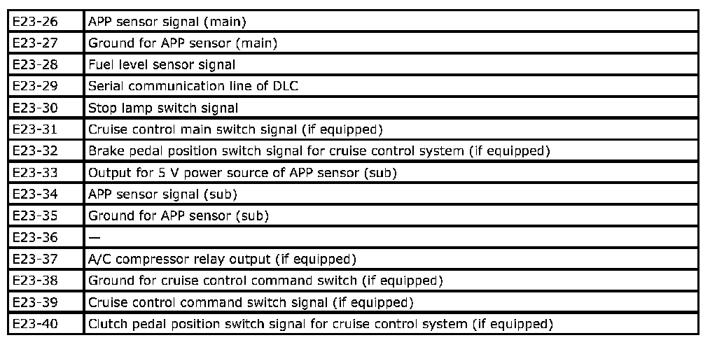 Engine And Emission Control Input/output Table Part 2: