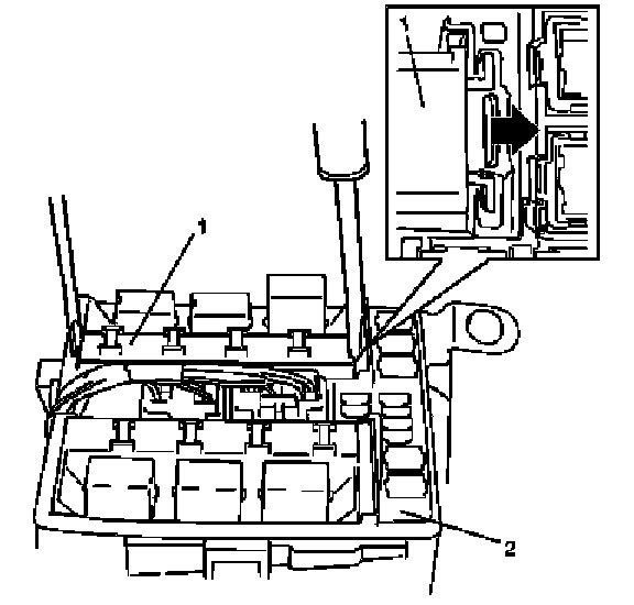 2. Remove integration relay No.2 (1) from fuse box No.2 (2).