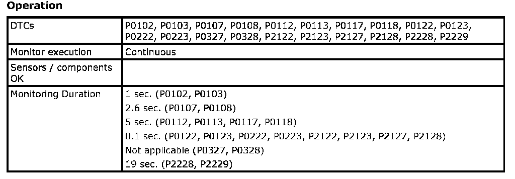 OBD System Description - Comprehensive Component (Engine Input) MonitorMonitoring Procedure