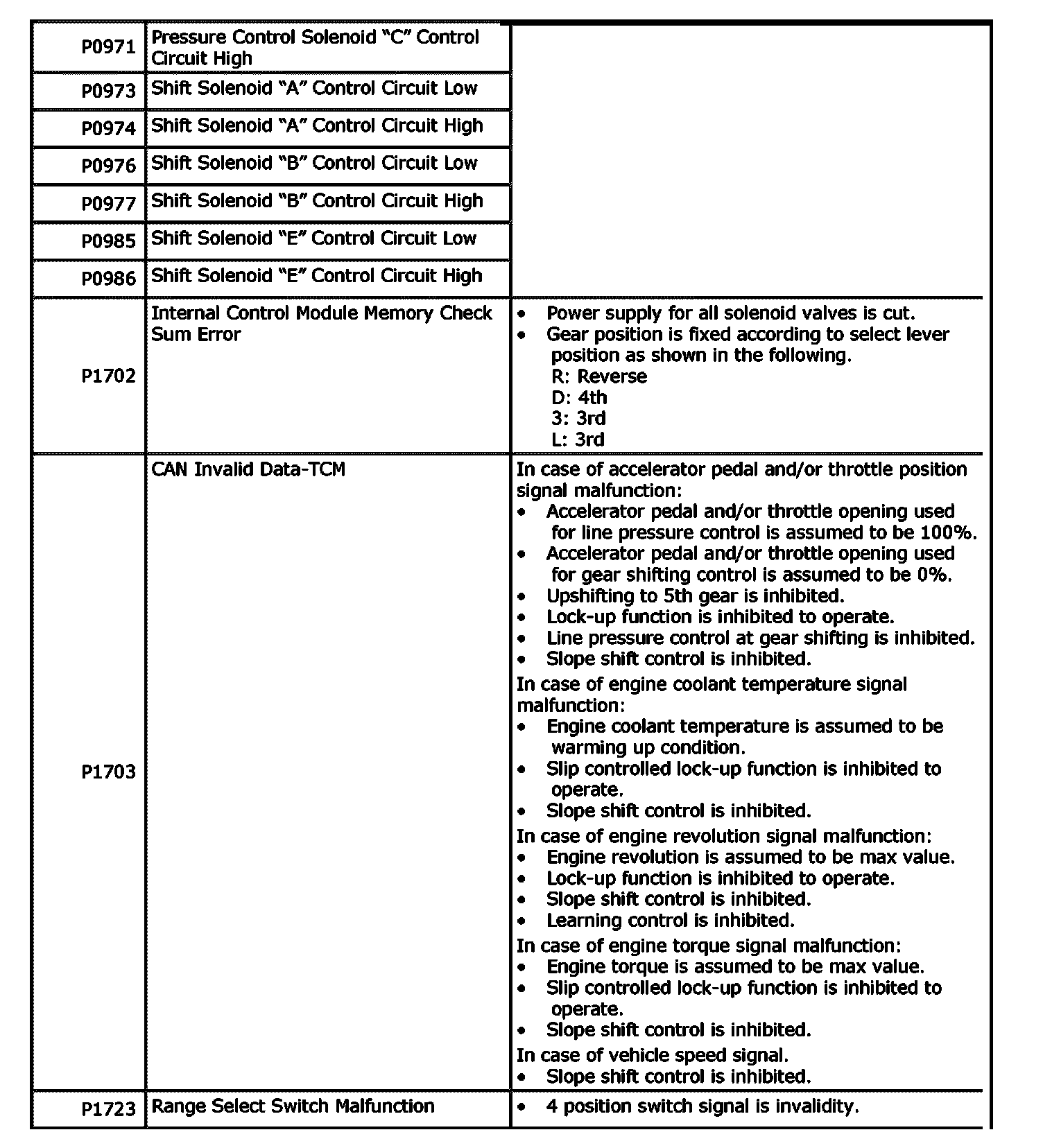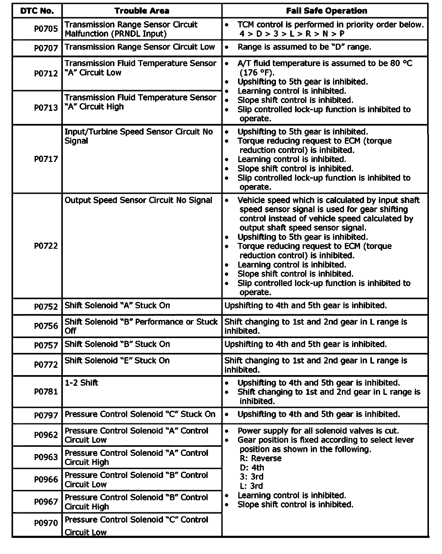 enters fail-safe mode as long as malfunction continues to exist but that mode is canceled when TCM detects normal condition after that.