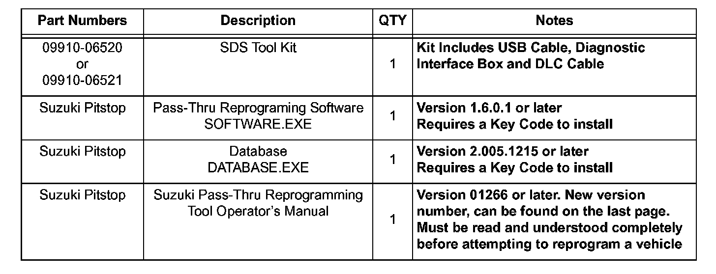 3. Following the procedure outlined in the Suzuki Pass-Thru Reprogramming Tool Operator's Manual, download and install the Pass-Thru Reprogramming Software "SOFTWARE.EXE" if it is not already installed.
