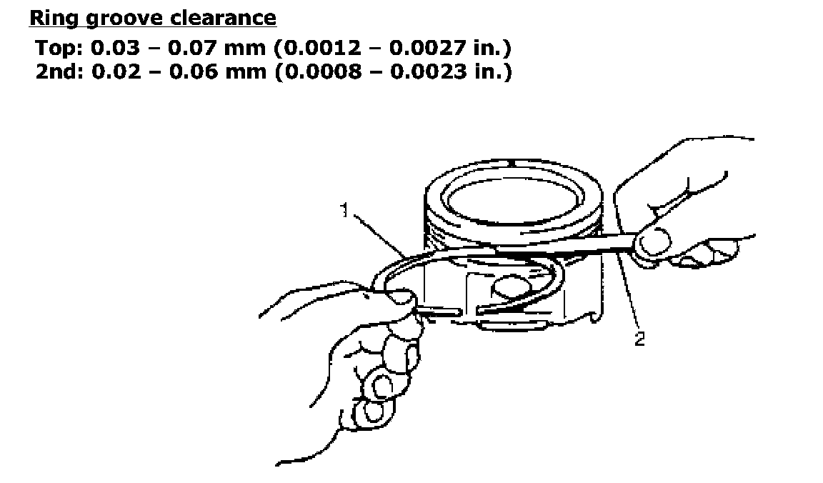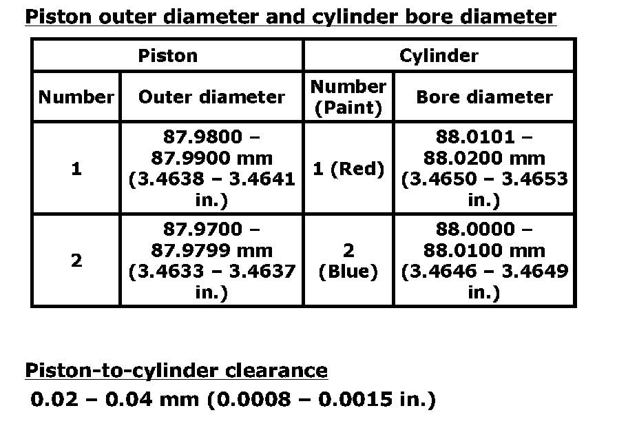 B: Piston clearance = 0.02 - 0.04 mm (0.0008 - 0.0015 inch)