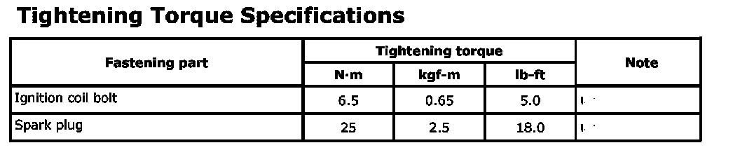 For the tightening torque of fastener not specified, refer to Fastener Information.