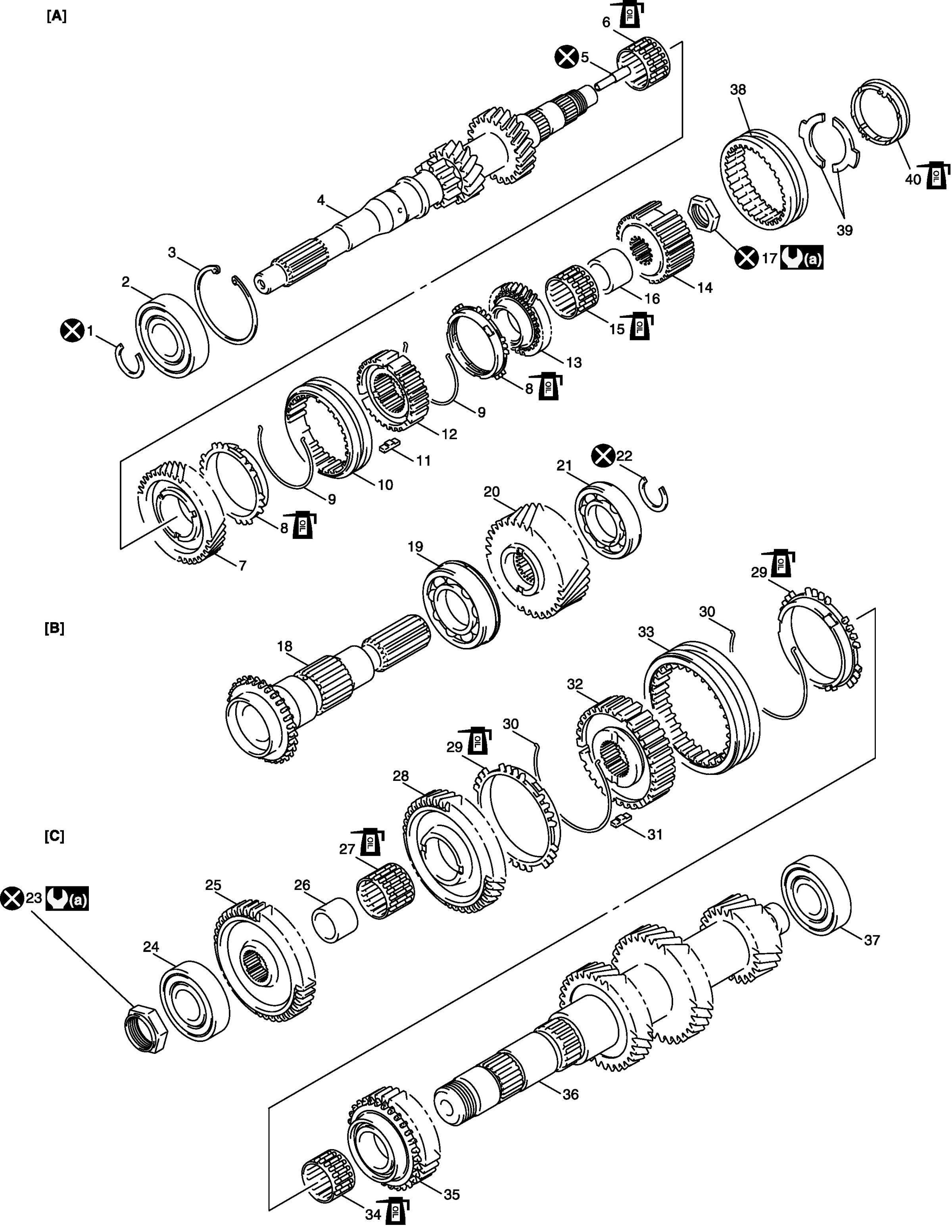 Input Shaft Assembly, Output Shaft Assembly and Countershaft Assembly Components (part 1):