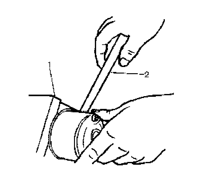 4) Remove three bolts and take out ABS hydraulic unit/control module assembly (1) from bracket using flat end rod or the like (2).