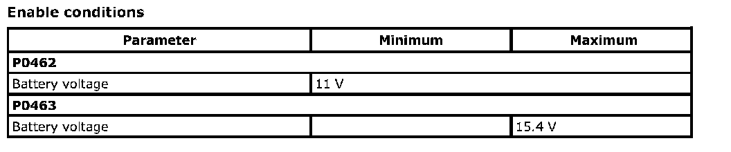 Refer to DTC P0462 / P0463: Fuel Level Sensor Circuit Low / High. P0462 P0463