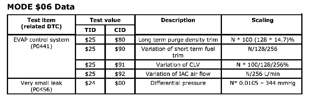 MODE $06 Data