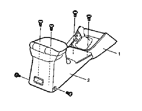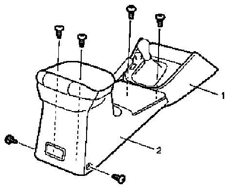 3. Remove rear center console box (2) and front center console box (1) by removing screws.