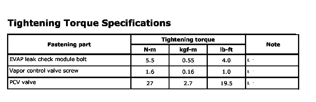 Tightening Torque Specifications: