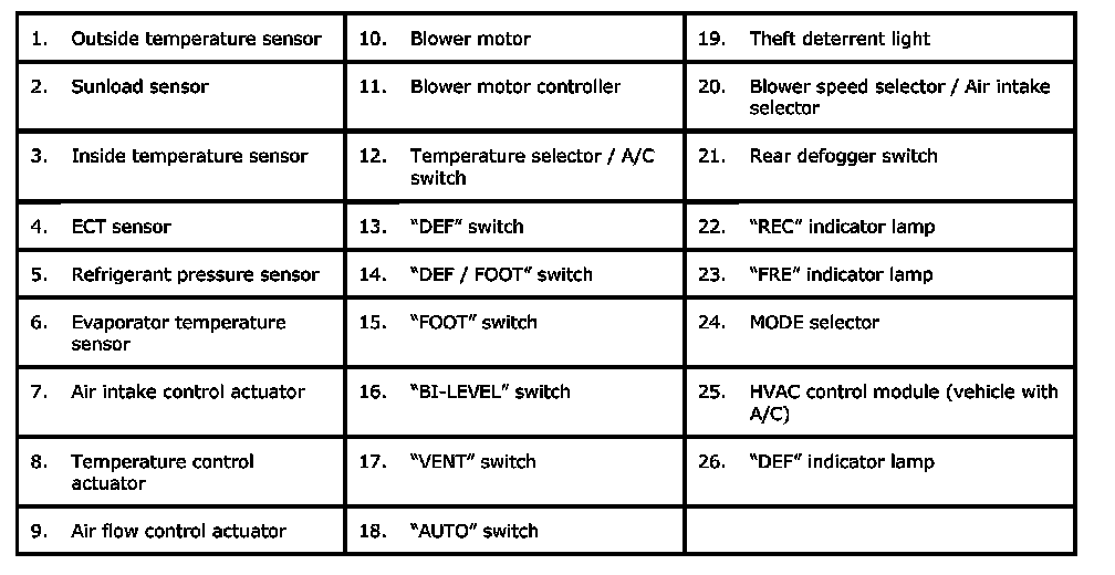 Electronic Components Location For Heater (For Vehicle Without A/C):