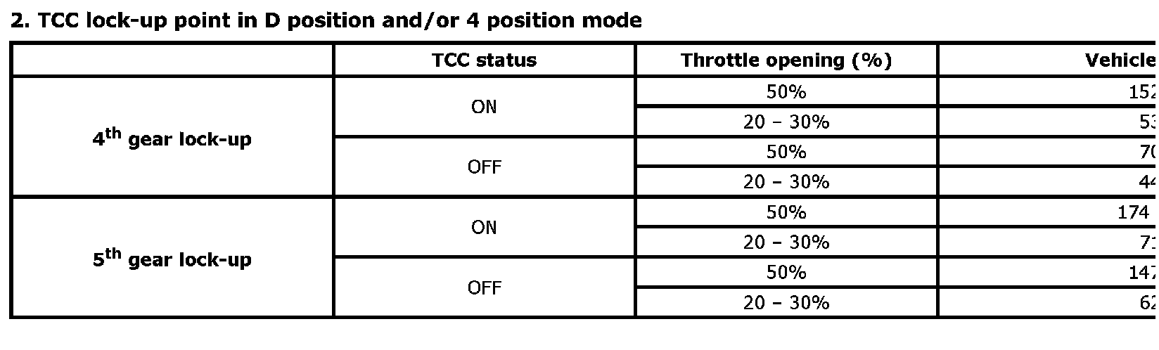 2. TCC lock-up point in D position and/or 4 position mode