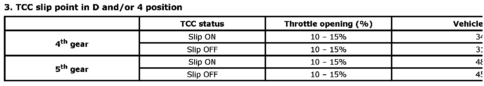 3. TCC slip point in D and/or 4 position