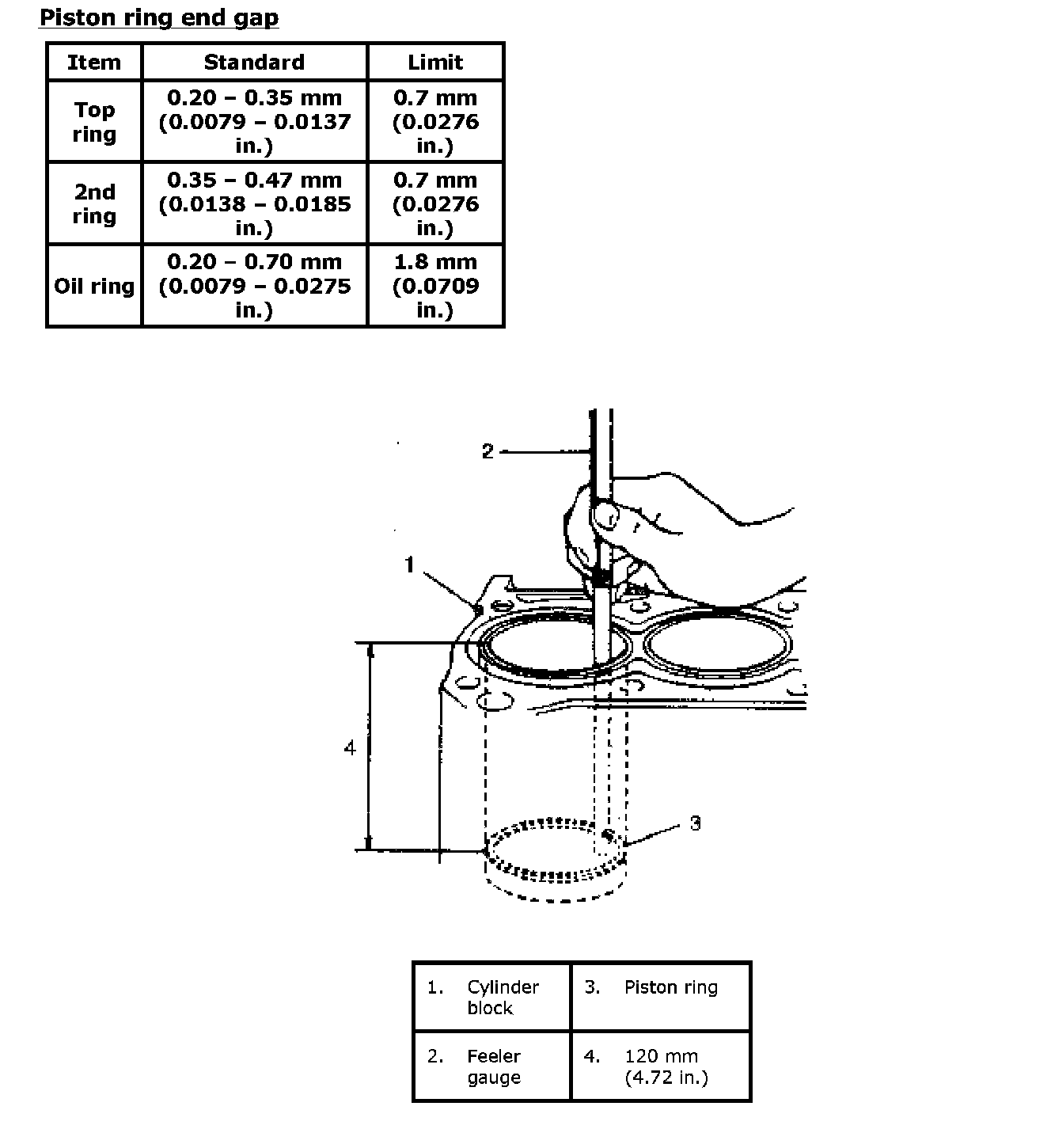 B: Piston clearance = 0.02 - 0.04 mm (0.0008 - 0.0015 inch)