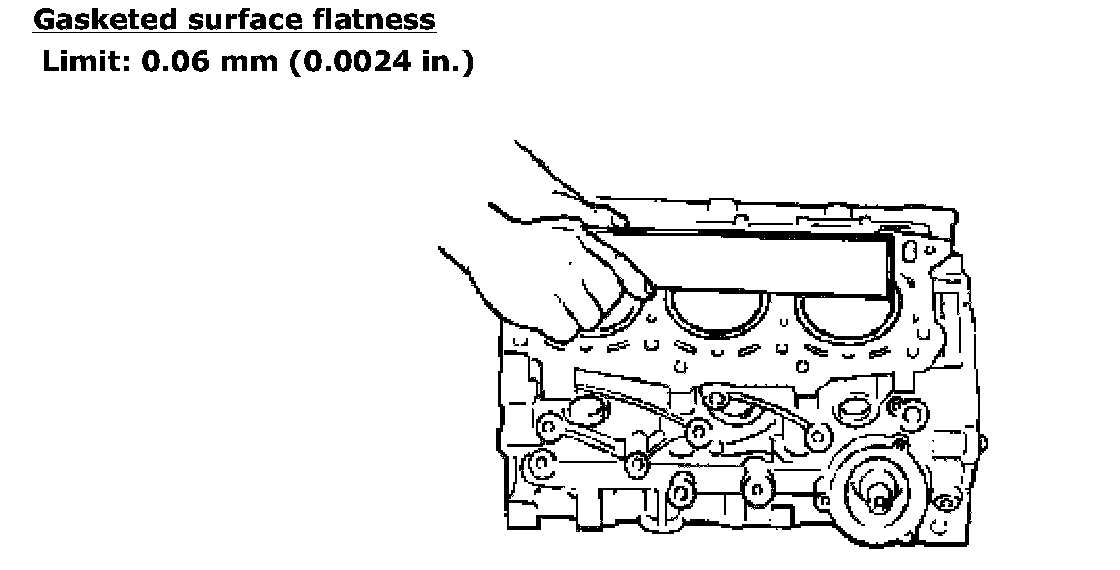 Using straightedge and thickness gauge, check gasketed surface for distortion. If flatness exceeds its limit, correct or replace it.