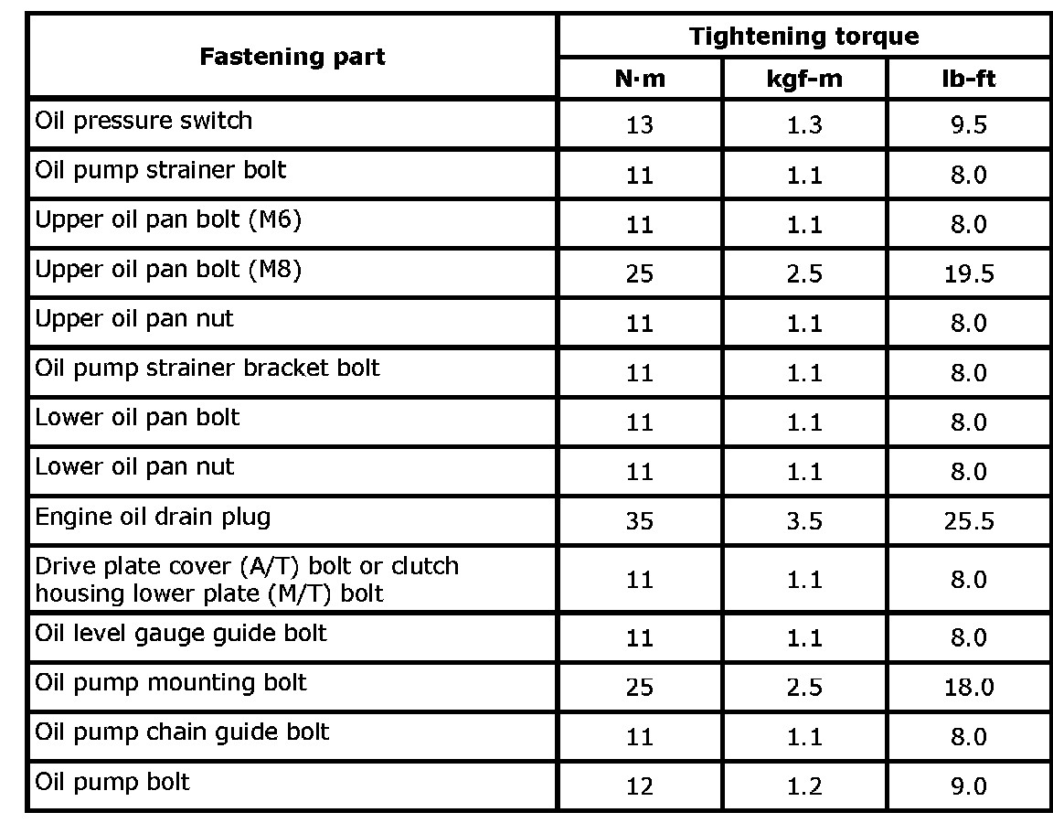 Tightening Torque SpecificationsNOTE: The specified tightening torque is also described in the following.