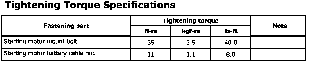 Tightening Torque SpecificationsTightening Torque Specifications: