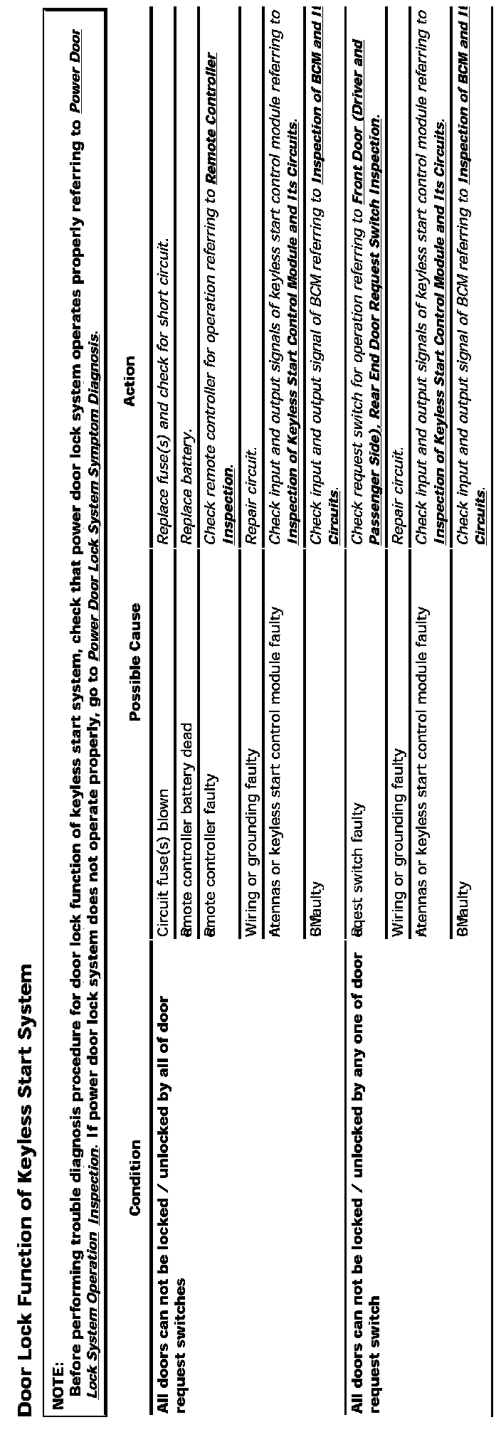 Door Lock Function Of Keyless Start System: