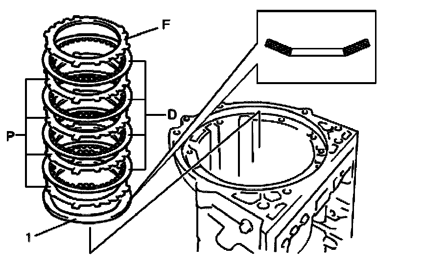 62. Install 2nd (No.3) brake cushion plate (1), 2nd (No.3) brake plates "P" and 2nd (No.3) brake discs "D".