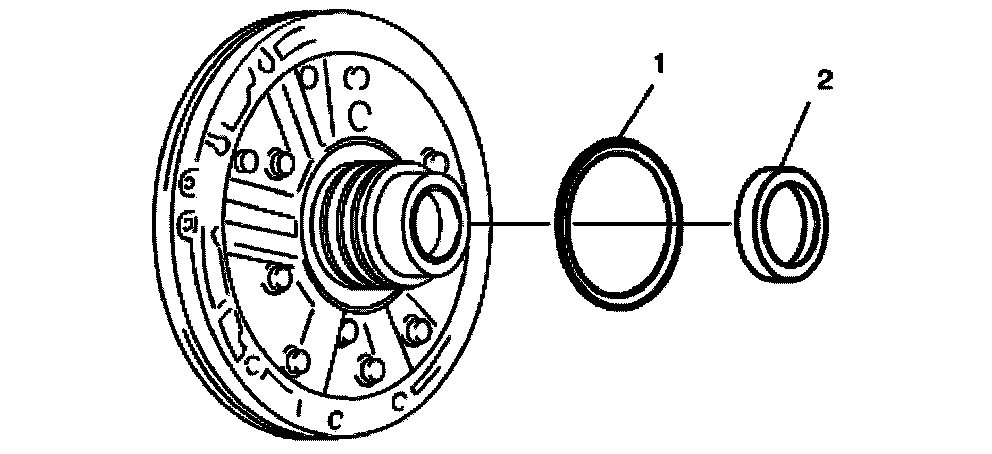 69. After applying A/T fluid to new O-ring (1) and then install O-ring to oil pump assembly (2).