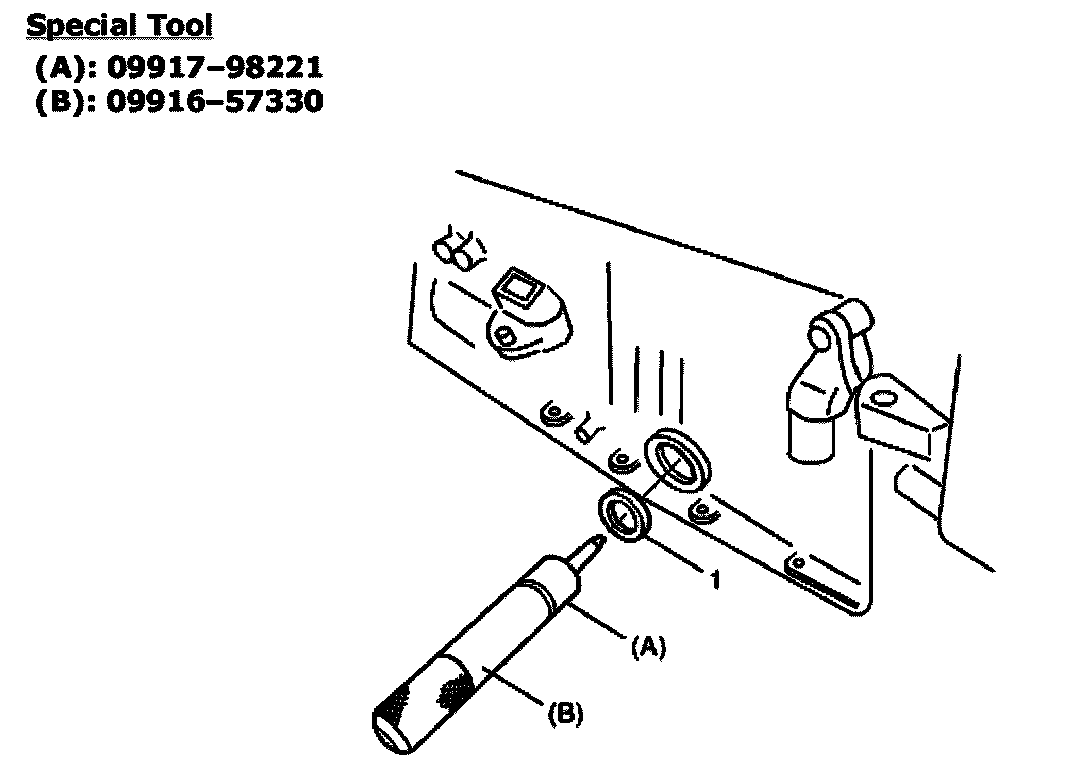 71. Install new 2 manual shift shaft oil seals (1) to transmission case by using special tools.
