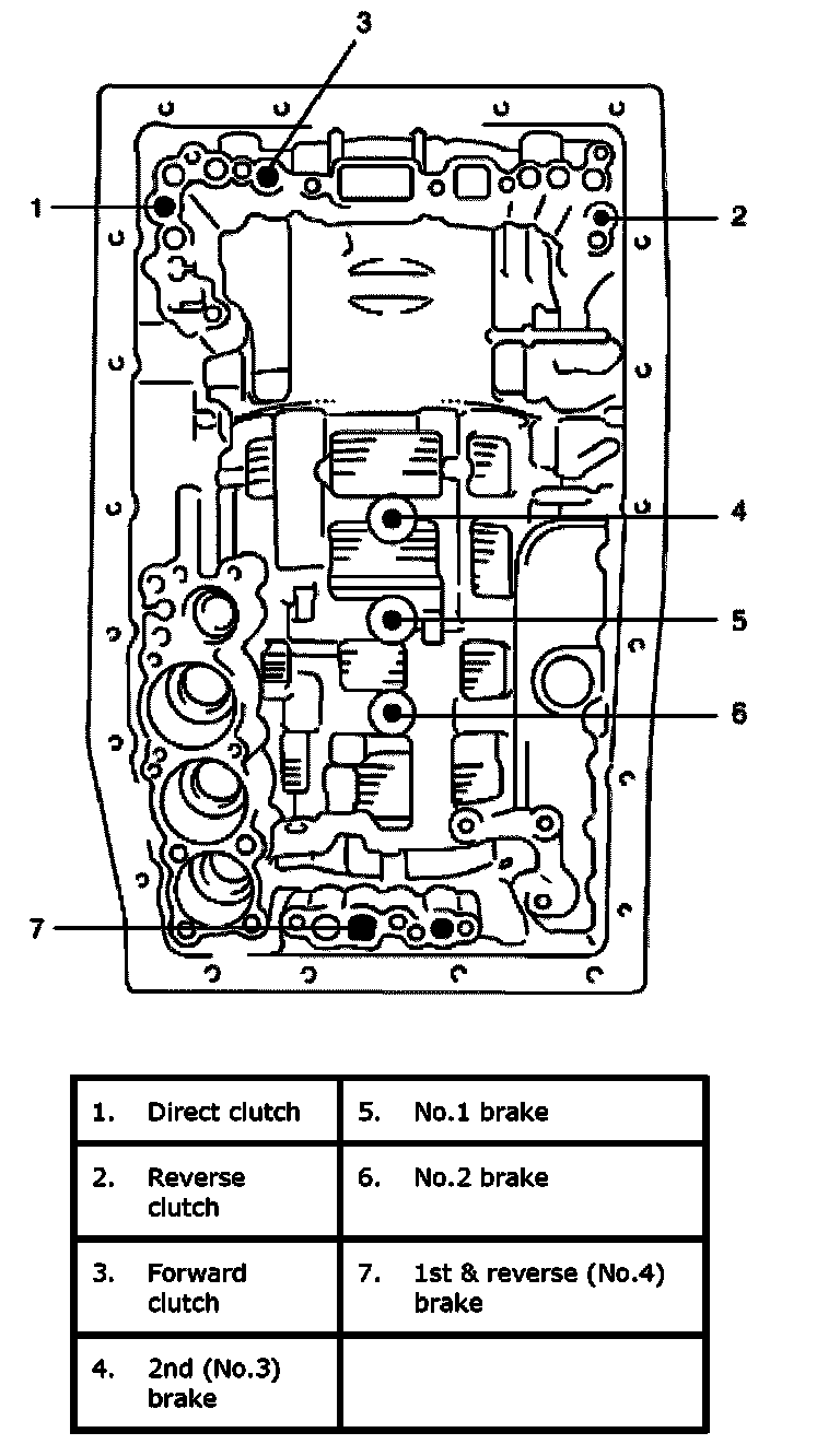 ^ When inspecting 1st & reverse (No.4) brake, check oil hole (8) closed.