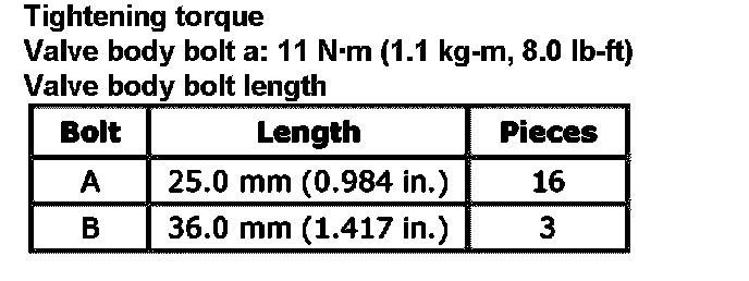 Transmission fluid temperature sensor clamp bolt a: 11 Nm (1.1 kg-m, 8.0 ft. lbs.)