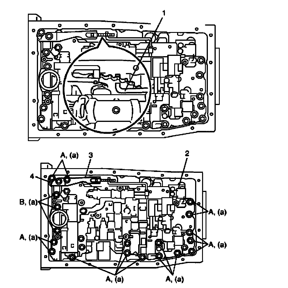 94. Install oil strainer (1) to valve body assembly. Tighten 4 oil strainer bolts to specified torque.