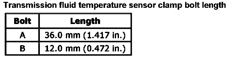 Transmission fluid temperature sensor clamp bolt b: 10 Nm (1.0 kg-m, 7.0 ft. lbs.)